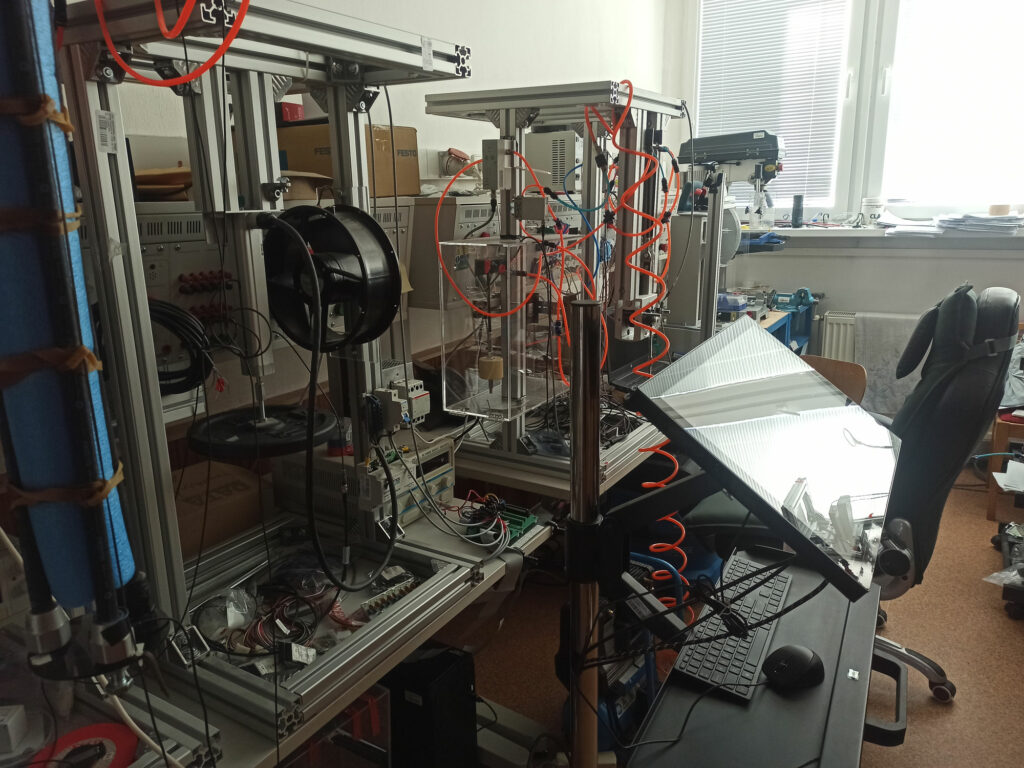 A research laboratory equipped with measuring technology (universal and special measuring instruments) for research in the field of soft robotics and soft actuators (fluidic muscles, actuators based on shape memory alloys – SMA, polymer soft drives – IPMC, DEA, HASEL), manipulators based on PAMs (2-DOF, 3-DOF, multi-parallel connections) and automatic control systems (advanced control of machines and processes). This lab will be used for data processing and system identification.