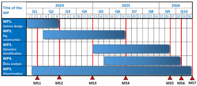 The implementation timetable for the work packages is shown using the Gantt diagram below.